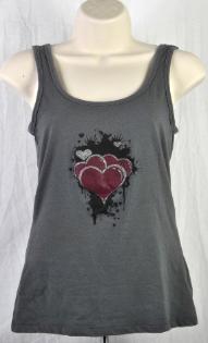 Poly viscose 65/35, 30 single, 3.7 ounce fabric. Side-seamed. Merrowed bottom hem. Shirring at racerback seam. Relaxed, drapey fit. (Athletic Heather is 52% poly/48% viscose. Marble Colors are 91% poly/9% combed and ring-spun cotton, 40 single, 3.5 ounce fabric.)